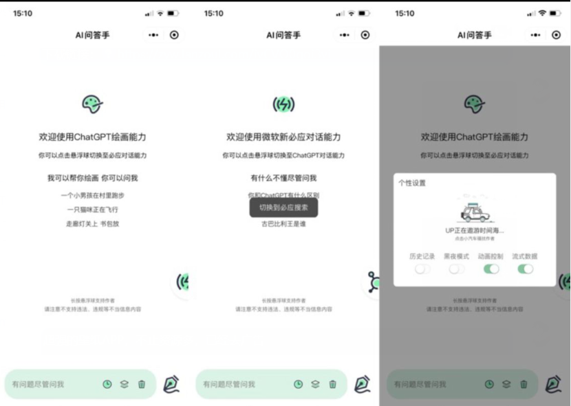 单击悬浮球切换 (gpt对话 gpt绘图 newbing对话 轮换操作)