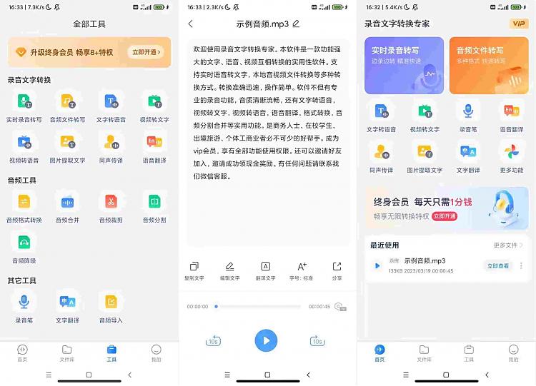 官方介绍:实时录音转文字,边说边转,精准高效,专业录音神器,文字语音转换,音频裁剪合并,文字转语音,语音合成制作,广告视频配音,本地音频转文字,轻松导入,一键转写,视频转文字,精准提取,快速转换